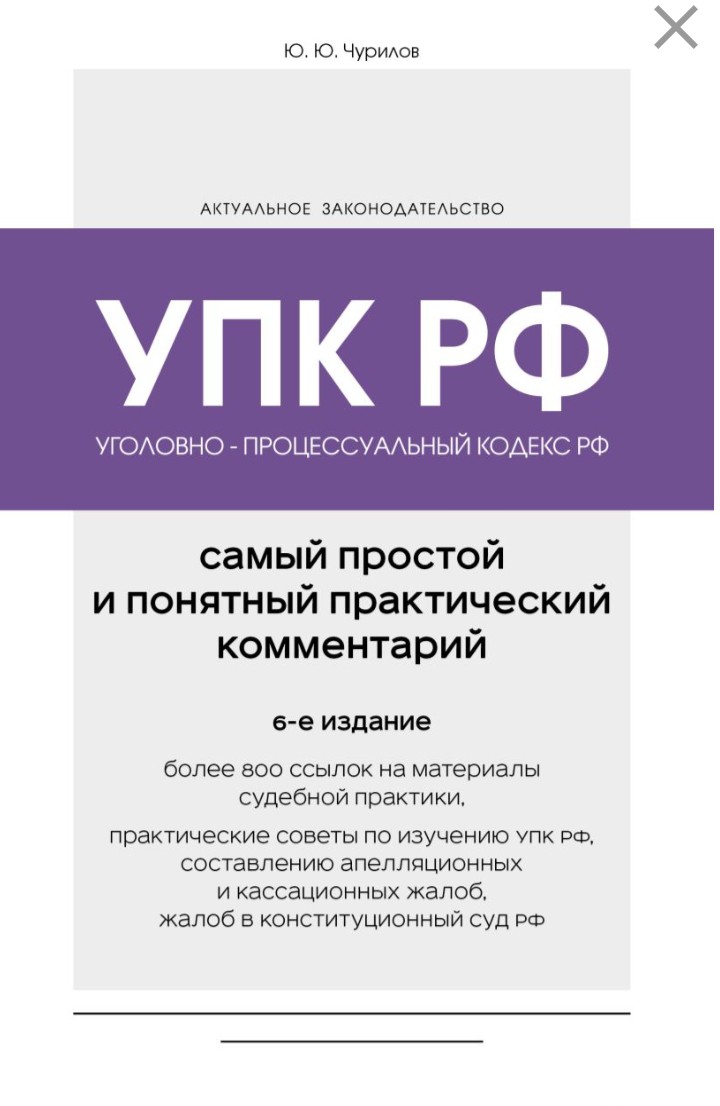 Чурилов Ю.Ю. УПК РФ: самый простой и понятный комментарий. М., Эксмо, 2020- 2-издание, 816 с. ISBN 978-5-04-109975-6